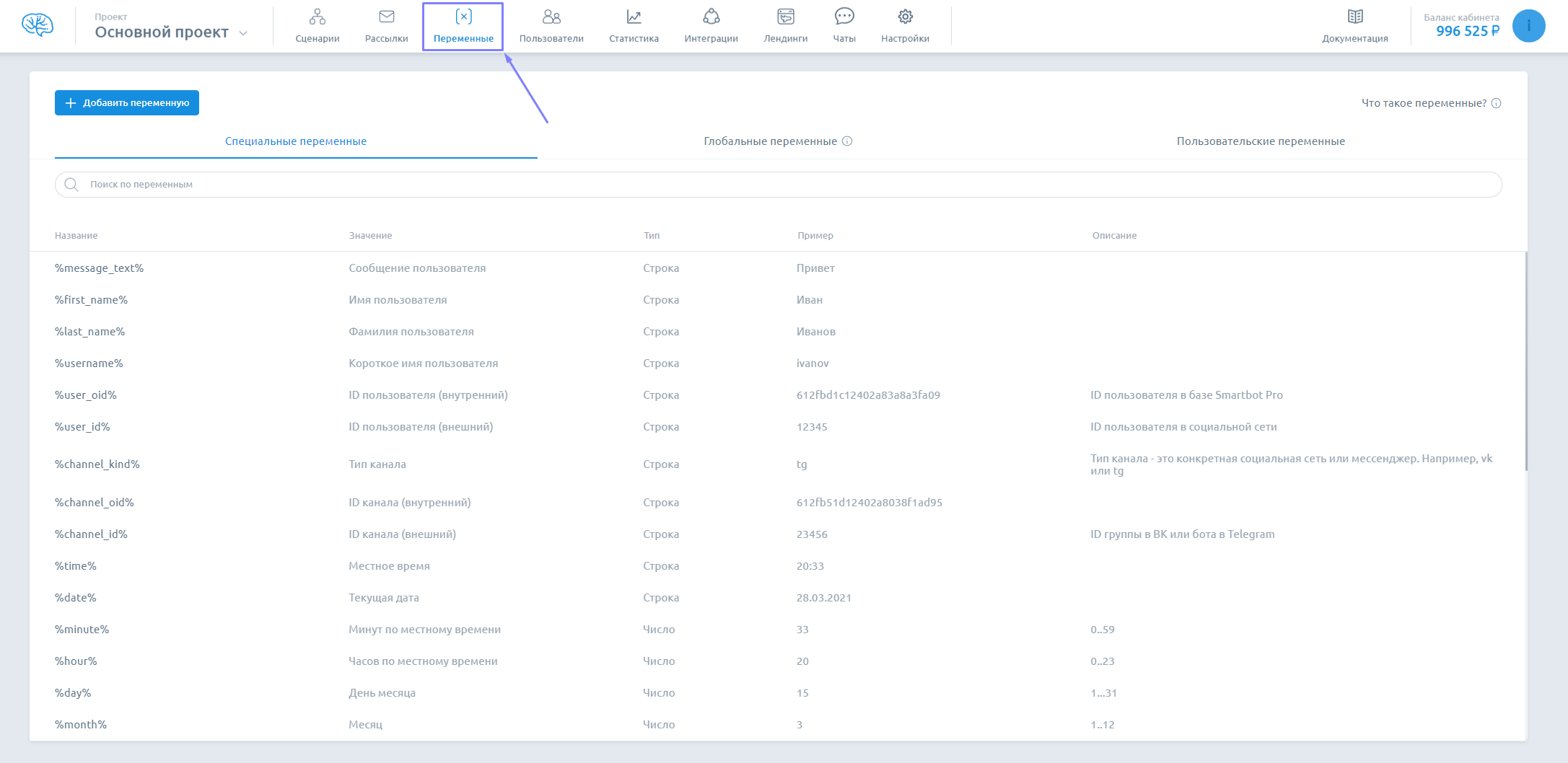 If you have just started working in Smartbot Pro, we advise you to look into the special variables section.